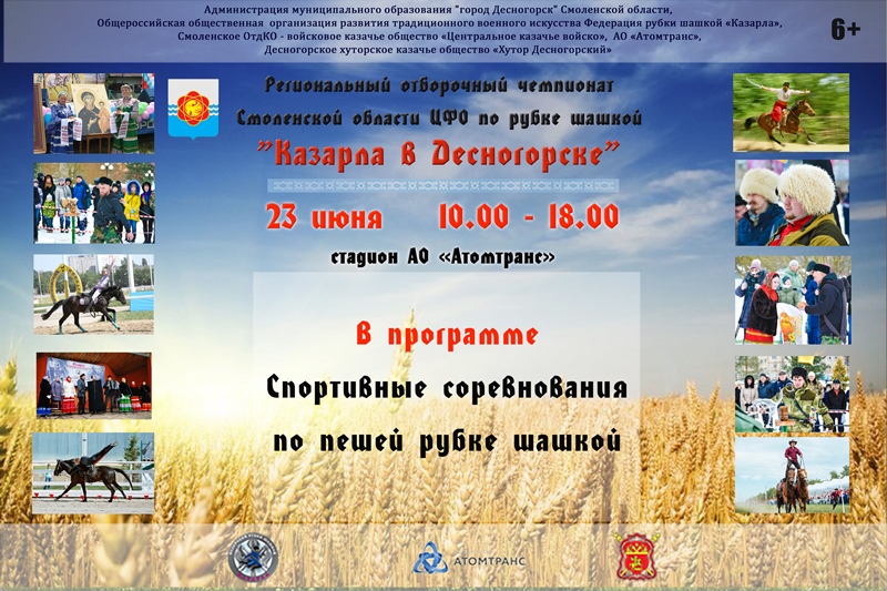 23.06.2019 в 10.00 на стадионе «Атомтранс» региональный отборочный чемпионат Смоленской области ЦФО по рубке шашкой «Казарла в Десногорске»