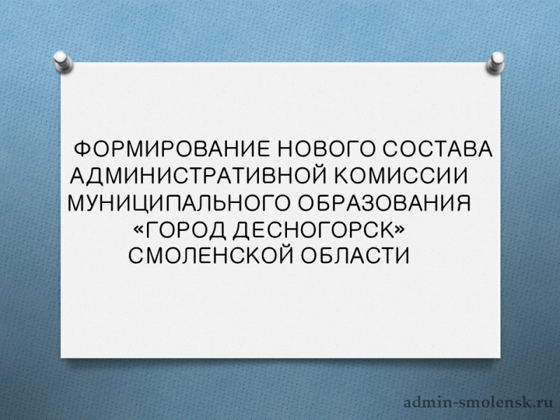 ФОРМИРОВАНИЕ НОВОГО СОСТАВА АДМИНИСТРАТИВНОЙ КОМИССИИ МУНИЦИПАЛЬНОГО ОБРАЗОВАНИЯ «ГОРОД ДЕСНОГОРСК» СМОЛЕНСКОЙ ОБЛАСТИ