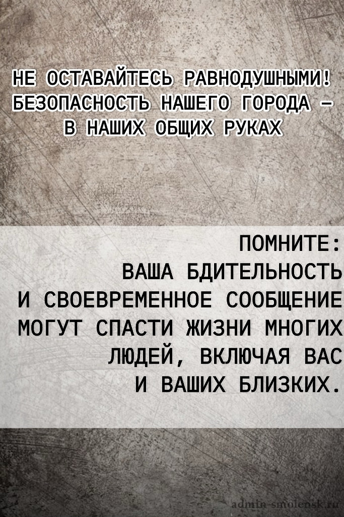 Не оставайтесь равнодушными! Безопасность нашего города – в наших общих руках.