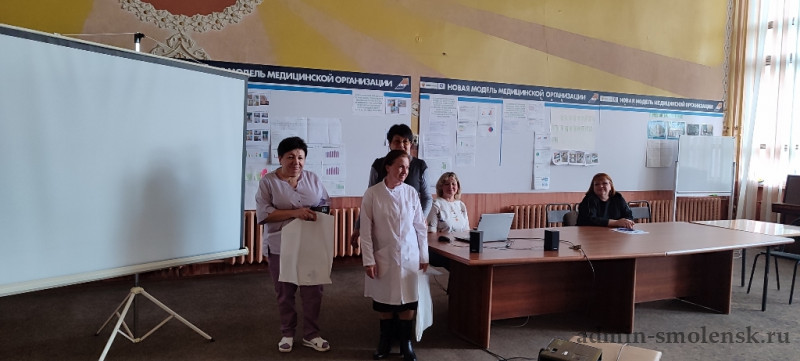 Галина Марковна Бородкина - руководитель приёмной Общественного совета Госкорпорации «Росатом» в г. Десногорске, с теплотой поблагодарила медицинских работников МСЧ №135 за их нелёгкий, но такой важный труд, а также поздравила будущих мам, вручив памятные подарки как сотрудницам учреждения, так и девушкам, которые пришли на встречу.